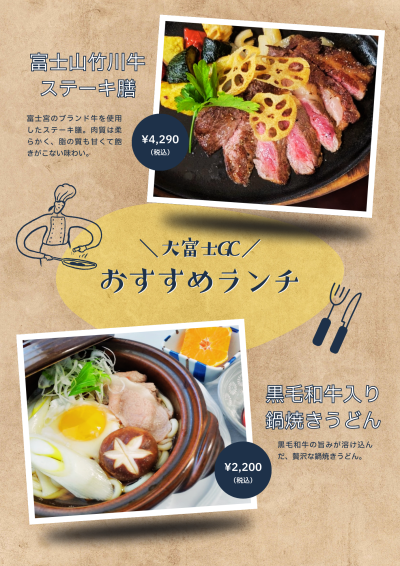 お客様にご満足頂けるよう、季節に合わせたメニューでお待ちしております。緑いっぱいのコースを眺めながら、お食事をお楽しみ下さい。 また、プレー後のパーティーも承っております。